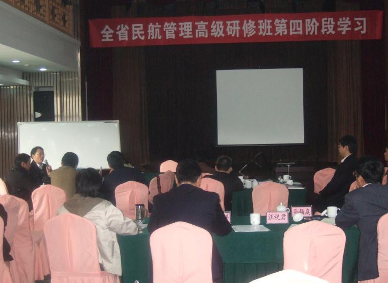 由省交通运输厅与南京航空航天大学、中国民航管理干部学院联合举办的“江苏省民航管理高级研修班”第四阶段培训于11月28日-12月1日在我省无锡市举办。在无锡市交通局、无锡机场有限责任公司、无锡空港事务管理局等领导的认真组织和精心安排下,学习班全体学员认真听课,集中思想,积极思考,授课老师调查研究,精心讲解,图文并茂,学员感触颇深。在无锡期间,全体学员还参观了无锡苏南国际机场和无锡网络高新区。