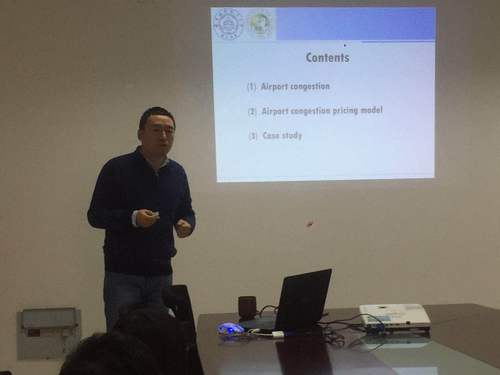 1月15日,公派留学回国教师、三级片 胡荣副教授在将军路校区1号楼为学院师生做了题为“Airport congestion and airport congestion pricing”的学术报告。报告主要介绍了胡荣副教授在美国南佛罗里达大学访问期间所开展的相关研究工作,重点介绍了机场拥挤带来的航空公司、旅客以及环境的外部成本的计算方法,机场拥挤收费模型以及缓解机场拥挤的航空时刻调整、合并方案等。报告中结合案例进行讲解,深入浅出,为师生们了解机场拥挤收费模型与方案提供了思路。