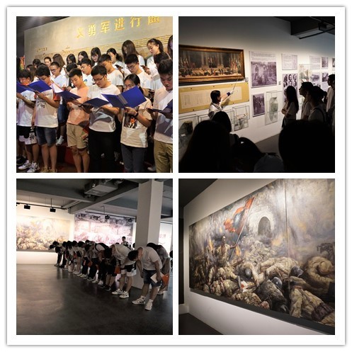 20日上午,硕博团参观了南京民间抗日战争博物馆,追忆历史,缅怀先烈。博物馆讲解员陈刚老师生动复现了南京保卫战,动情讲述了革命先烈的感人事迹,细致介绍了馆藏文物和影像资料,为硕博团成员上了宝贵的一课。满怀敬畏之心,硕博团成员们面向烈士纪念墙集体鞠躬行礼,并通过诗歌朗诵表达了对革命先烈的敬重与感激。