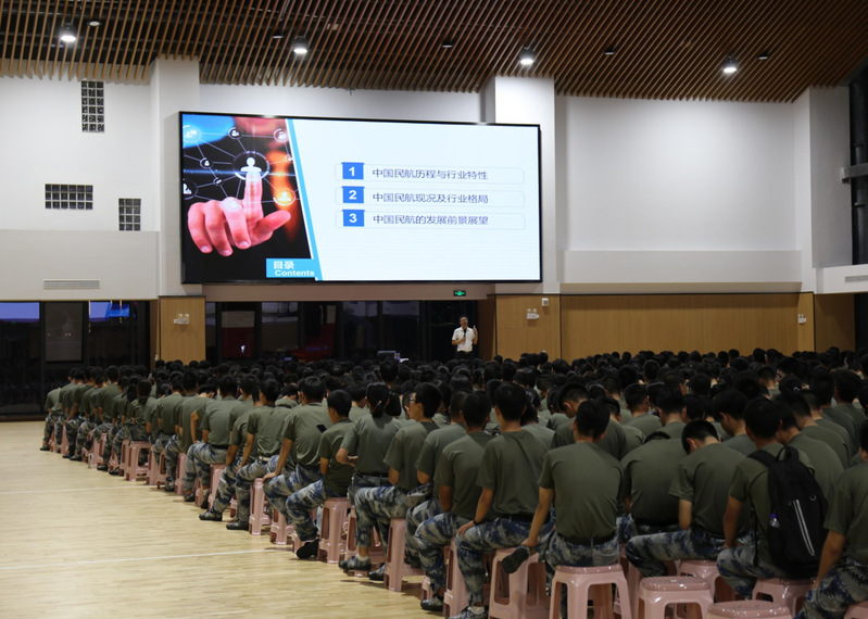 9月10日晚,民航/飞行学院在天目湖校区风雨操场举办了“凤回巢”校友职场说讲座,本次讲座邀请到的分享嘉宾为交通运输(航空运输管理)专业1993级校友、现任春秋航空股份有限公司副总裁黄兴稳,民航/飞行学院常务副院长高健、2019级新生辅导员和近1000位同学参加了本次讲座,讲座由学院党委副书记贡海俊主持。