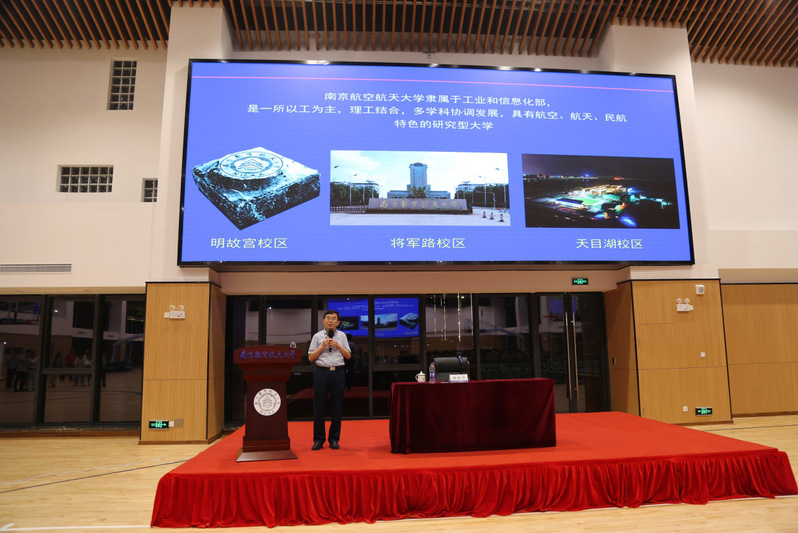 讲座开始之前,天目湖校区党工委书记张新明向同学们传达了郑永安书记在看望校区军训同学时给校区全体新生的寄语,郑永安书记在讲话中鼓励同学们锻炼好身体,磨练好意志,与新校区共成长,为将来自我成才和服务祖国打下坚实基础。随后,施大宁教授为大家介绍了南京航空航天大学的办学历程,他以明故宫校区为起点,回顾了将军路校区20年的发展变化,直到天目湖校区的正式启用的历史。他希望同学们以黄领才、吴光辉、林左鸣、李中华等杰出校友为榜样,珍惜时光,奋发有为,成为对国家对社会有用的栋梁之才。