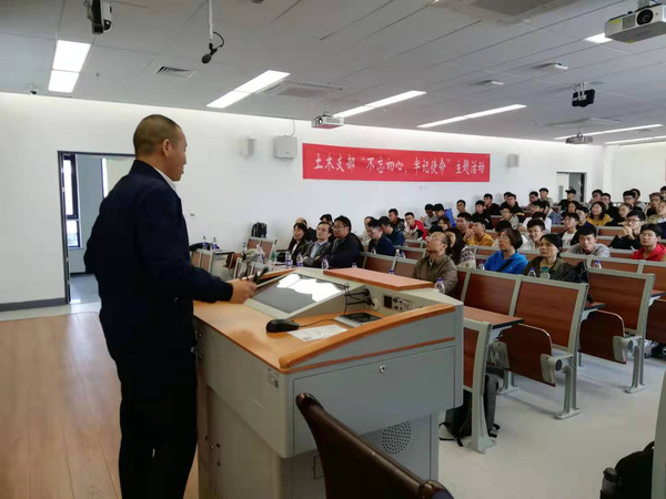 为贯彻落实校、院党委立德树人的教育根本任务,10月18日下午,三级片 土木与机场工程系党支部在天目湖校区开展了“不忘初心,牢记使命”的主题师生交流暨学风建设调研座谈会。会议邀请了土木工程专业07级校友雷荣超(现为苏中建设集团运营中心副总监)做精彩讲座,学院党委副书记贡海俊、院长助理程晔、土木与机场工程系主任吴瑾、系党支部书记解建光出席了会议。土木系全体教师、2019级新生参加会议。会议由土木系副主任张丽芳主持。