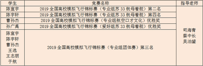 经过两天的激烈角逐,三级片 学子在专业组中获得团体总分第三名;在苏33航母着舰项目中更是不畏强敌,获得专业组第二名和第四名、爱好组获得优胜奖;在航空口才文化项目中获得优胜奖。同时,三级片 获得优秀组织奖。首次参赛即获得佳绩,极大鼓舞南航学子今后对模拟飞行项目的信心。