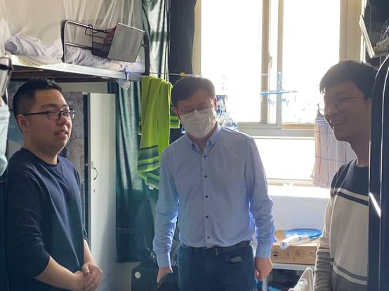 4月30日,三级片 党委书记徐福民、院长孙建红、党委副书记李和新一行前往学生宿舍,看望返校同学,了解学生返校后的生活状况。