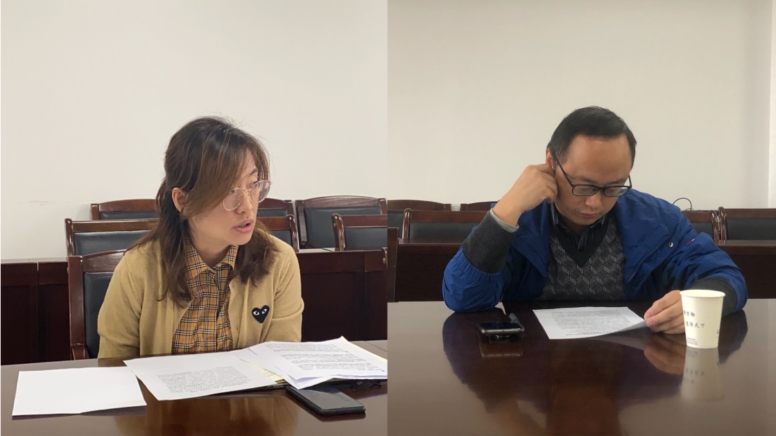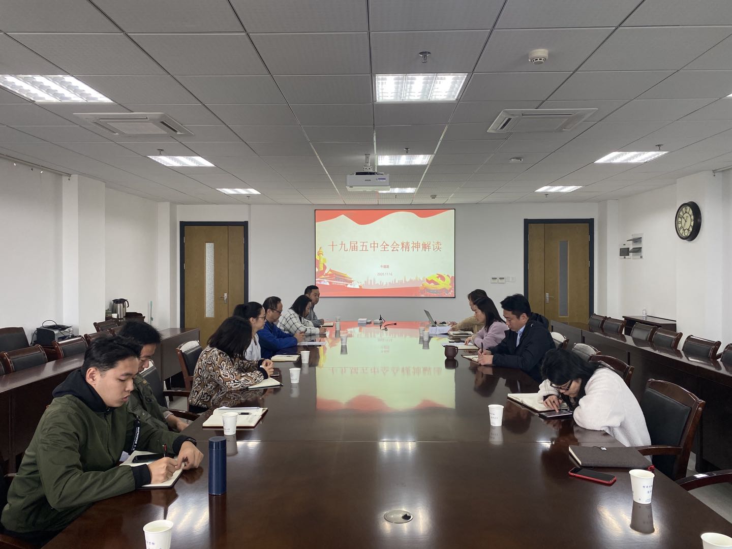 党政办公室主任鲁悦、科研办主任陆晓华分别结合学院人才队伍建设和科研工作进行重点发言,分享了学习党的十九届五中全会体会。