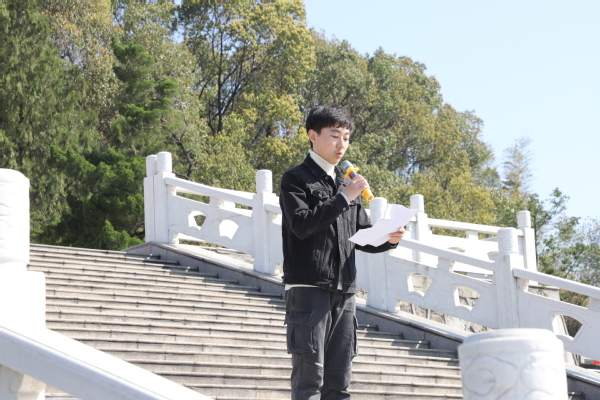 活动伊始,全体同学奏唱中华人民共和国国歌,来自0719601团支部的费天行同学代表全体同学诵读祭文,学生代表在烈士纪念碑前敬献花篮,各团支部的团员们依次敬献鲜花,并向烈士纪念碑深深鞠躬,表达对烈士的崇高敬意和深切悼念之情。