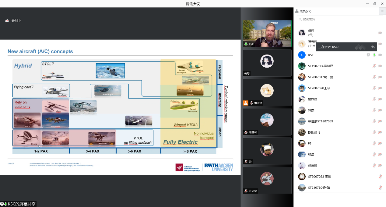 黄天翔老师主持。德国亚琛工业大学结构力学和轻量化设计研究所(SLA)所长Kai-Uwe Schröder教授再次受邀为师生带来了一场围绕结构适航性展开的线上讲座。