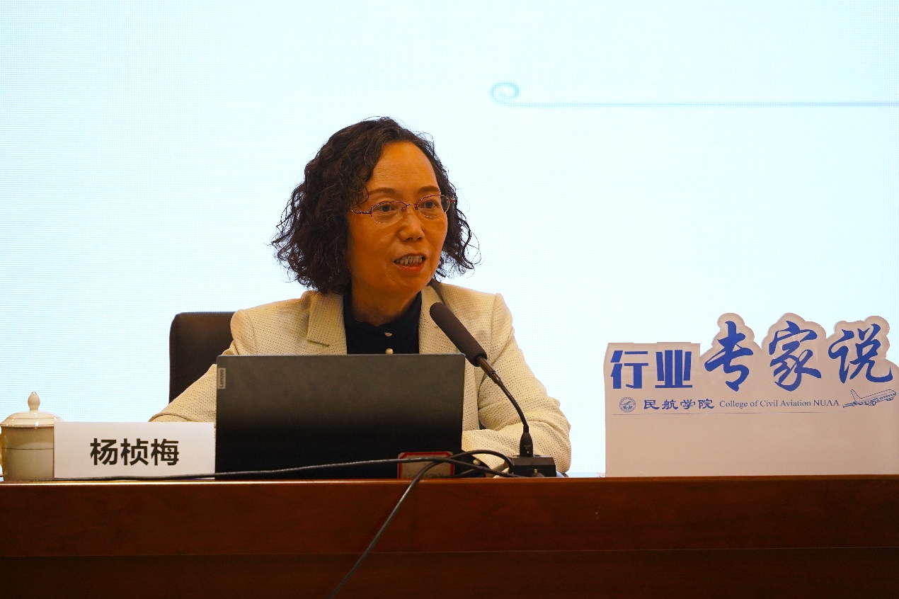 杨桢梅从三个层面展开系统阐述。首先介绍了低空航空器研制产业的发展现状与前景,同时展示了我国多种电动垂直起降飞行器的研发进展,让在场师生对产业发展态势有了清晰认知。接着聚焦适航审定的核心价值,结合历史事故案例,深入阐述了适航审定作为民用航空产业安全发展的基石,其核心宗旨是促进航空发展、维护公众利益、保障安全。最后,她梳理了低空航空器相关的适航法规与政策,详细解读了针对同构型、用途的航空器所发布的适航标准,以及我国在适航领域的国际双边合作情况,通过系统的讲解,展现了低空经济适航领域的发展动态与规范方向,加深了师生对适航审定工作的理解与认知。她勉励同学们,作为新时代民航人,要怀揣家国情怀,勇担光荣使命,为祖国民航事业高质量发展贡献力量。