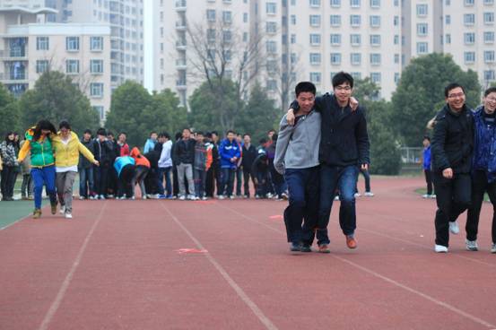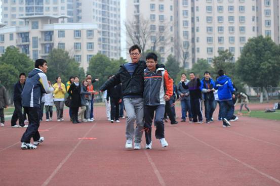 2011年3月14日下午,为进一步推动年级“阳光体育”活动的开展,有效落实学生每天体育活动半小时政策,丰富学生课间活动内容,来自三级片 10级全体学生在辅导员夏昌青老师的带领下,在将军路校区西田径场开展了“两人三足——绑腿跑”比赛活动。