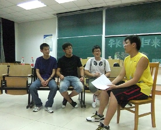 此次经验交流会以访谈的形式展开。主持人首先就之前了解到的同学们普遍关注的问题对学长进行提问,三位学长依次作出回答。访谈内容主要涉及未来工作性质、工作内容、工作环境、时间安排等。学长的回答使学生们对未来的工作有了大致的了解,打消了部分同学心中的困惑和疑虑。