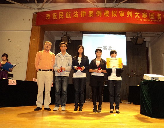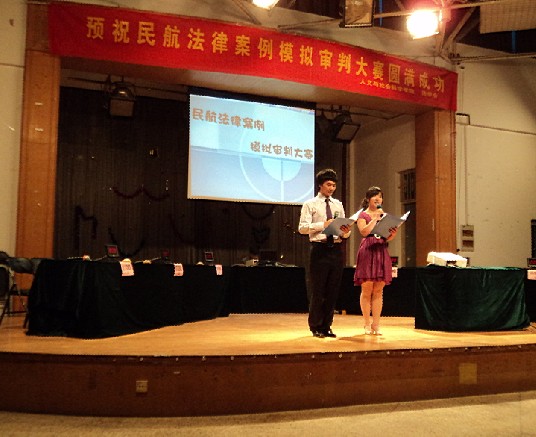 2011年5月22日晚七点整,由民航/飞行学院与人文社会学院共同举办的“民航法律案例审判大赛”在南京航空航天大学将军路校区大学生活动中心顺利举行。民航/飞行学院党委副书记刘建成,研究生辅导员傅成成以及人文与社会科学学院党委副书记高小泽,团委书记尹春萍,本科生辅导员欧珊、冯岑作为嘉宾出席了此次大赛。