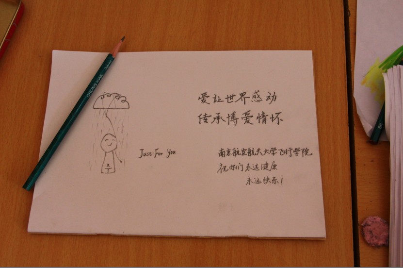 2012年5月16日,南京航空航天大学飞行学院10级飞行中队45名飞行学员,在辅导员李鹏老师的带领下,来到了南京博爱安养庇护中心,开展以“再谈雷锋精神,感悟社会责任”为主题的志愿服务活动。