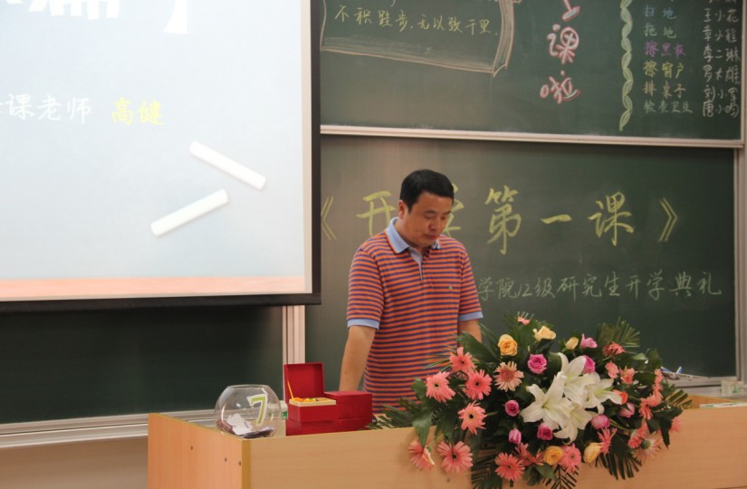在一阵悦耳的上课铃声中,12级研究生开学第一课正式启动。在第一篇章——理想篇中,三级片 党委副书记高健老师为同学们做了关于理想壮志、勇于担当发言。高书记从实际生活中的小事例出发,谆谆教诲,告诉同学们青年树立正确的人生观、价值观以及远大理想的必要性与重要性。从高书记循循善诱的讲话中,同学们无一不受到感染、心潮澎湃。