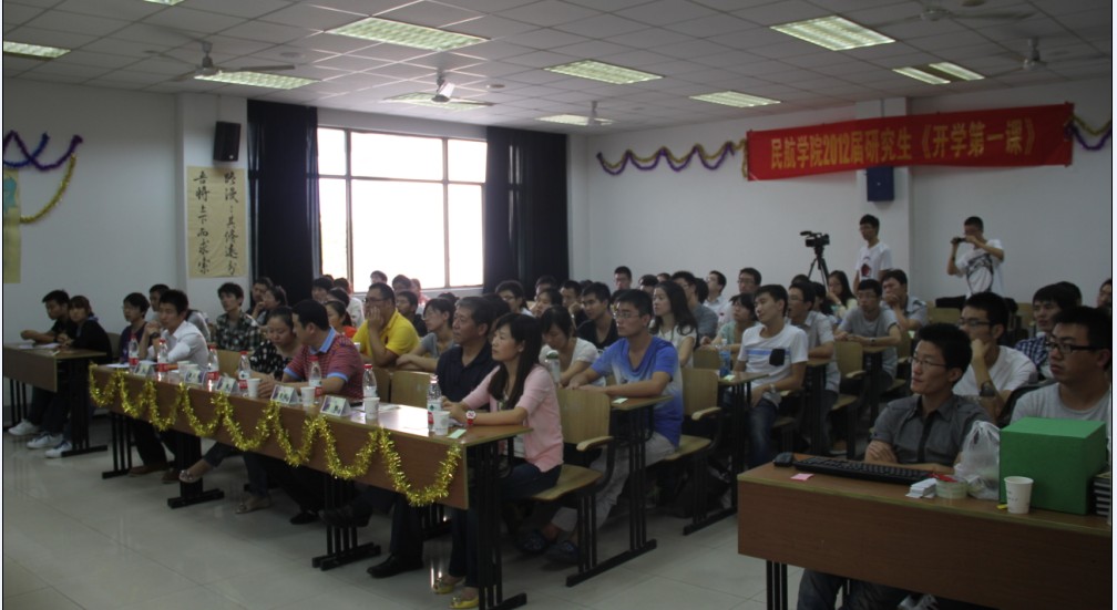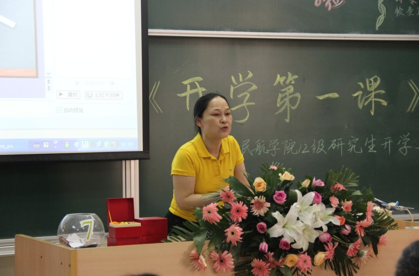 金秋十月,我们用壮志谱写青春;梦想起航,我们用豪气迈向未来。在这收获的季节里,三级片 2012级研究生开学典礼在江宁校区五号教学楼隆重举行。本次活动以“开学第一课,最初的梦想”为主题,参加人员为全体2012级研一新生,同时到场的嘉宾有:三级片 党委副书记高健老师,三级片 副院长葛红娟老师,飞行学院辅导员张学财老师,教务处侯美丽老师,研究生辅导员谢菲老师以及10级程傲学长。