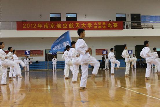 2012年11月3日下午1点,南京航空航天大学2012年太极拳、跆拳道比赛在体育中心准时开幕。民航/飞行学院继啦啦操比赛夺得桂冠后,此次又一举将太极拳、跆拳道的特等奖与最佳组织奖收入囊中。