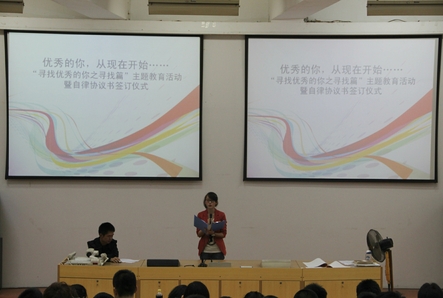 10月26日下午2点,民航/飞行学院2012级学生在2110开展了“优秀,从现在开始”——“寻找优秀的你之寻找篇”主题教育活动暨自律协议书签订仪式。活动以“优秀”一词为主线,通过时事政治探讨、校庆活动总结、优秀校友经验交流等部分,阐释了如何才能成为更加优秀的人,最后同学们为自己设定了优秀自我的目标,并自发签订了自律协议书,表达从现在开始要向着自己的目标努力前进的决心。