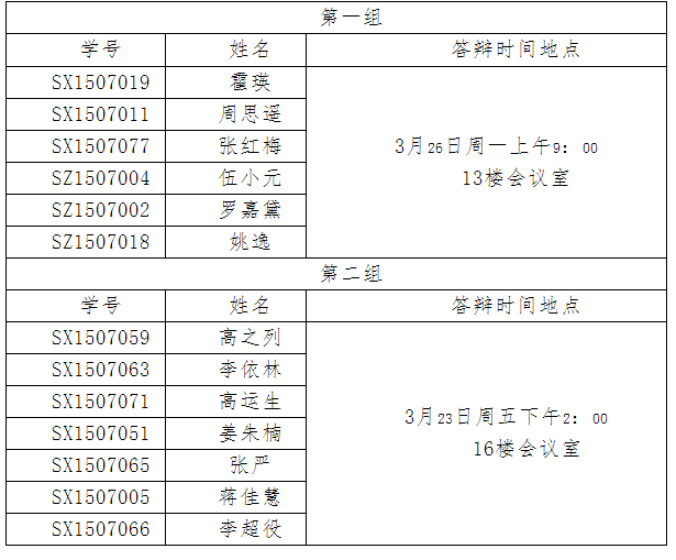 注: 参加院公开答辩的学生请将5本学位论文、全套归档材及1100元答辩费于3月21日中午11:00之前交至学院研究生教学办