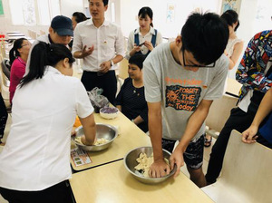 虽然做月饼对大家相对有些陌生,但每个人都认真摸索、努力尝试。从揉面团到包馅料,再到用模具压制成形,所有人都参与其中,相互帮助指导。