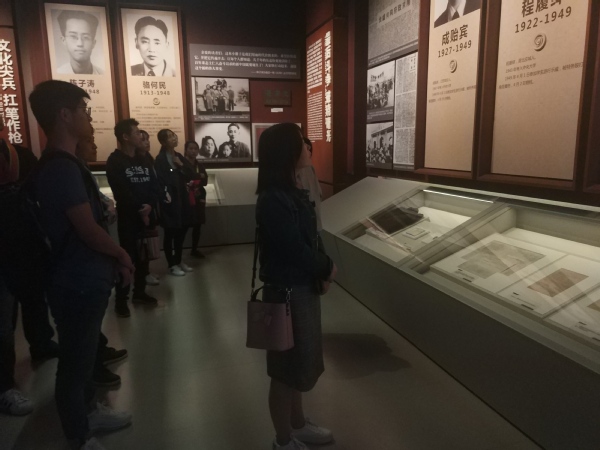 最后,同学们到达了雨花台烈士纪念馆,参观了馆内陈列的1000余件烈士遗物、450幅珍贵图片和恽代英、邓中夏等127位烈士的事迹和文献资料,聆听讲解员口述的革命先烈英勇事迹,心灵经受了巨大的震撼,被革命先烈的爱国精神深深感染。