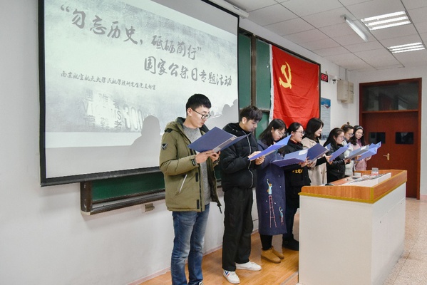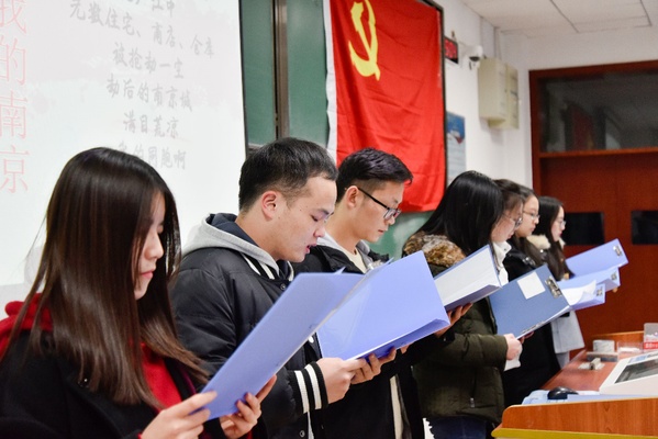 2018年12月13日,三级片 研究生党支部在2102教室举行“缅怀历史,砥砺前行”国家公祭日主题朗诵会。会议由第二党支部书记张子文主持,2018级全体研究生参与了此次活动。