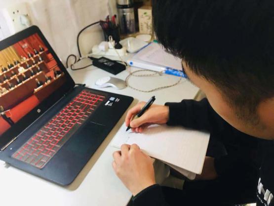民航学子以专业为单位,在团委,党支部的号召下,准时参与活动。各个专业根据各自的学习计划安排,在寝室,食堂,教室组织同学们共同观看直播。