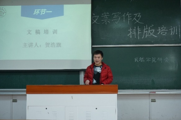 12月23日下午,三级片 研究生会于将军路校区6号楼举办了文案写作及排版培训活动。来自南京航空航天大学校研究生会的贺浩旗和龚叶妮担任本次活动的主讲嘉宾。本次培训活动主要以提高研究生的文案写作水平及排版布局审美为目标,分为文案培训、排版培训及聘书颁发三个环节来展开,吸引了三级片 30余名硕士研究生、博士研究生积极参与。
