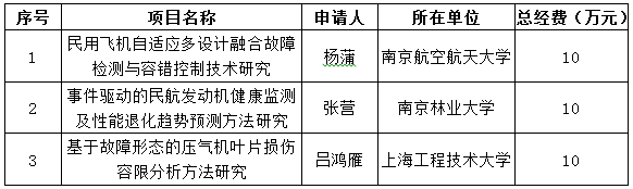 关于2019年度民航飞机健康监测与智能维护重点实验室开放课题获评项目的公示