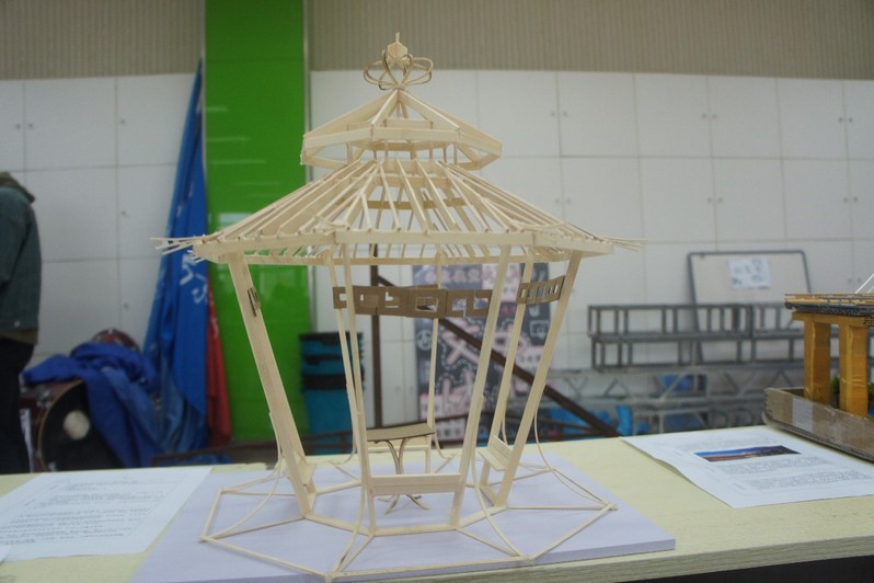 古风古色的“梓芸亭”(下图),凭借其极具中国特色的亭式结构、优秀的手工和巧妙的局部构造抗震理念,夺得了本次展示组比赛的一等奖。