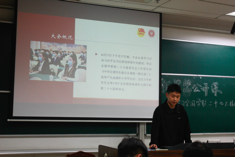 10月29日晚,三级片 (飞行学院)于将军路校区一号楼10106举办新思想公开课:学习全国学联二十七大精神,公开课由校第23届研究生支教团成员陶旭东、18级飞行团总支书记、校“青马工程”骨干班优秀学员黄邹洵主讲,学院将军路校区所有团干参与了此次活动。