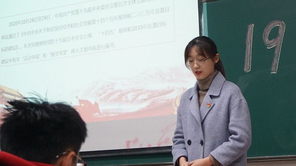 会前,为深入学习十九届五中全会精神与了解决胜全面建成小康社会取得的决定性成就,学生党支部书记陈祯与金辉共同主持召开了题为“学习全会精神,牢记党员使命”主题党课。