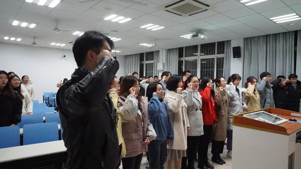 经支部党员充分讨论,全体正式党员以无记名投票方式对发展对象进行投票表决,经过现场计票唱票,支部大会全票通过汪琦等12名同志成为中共预备党员的决议。由硕士生党支部书记刘睿禹带领新入党的预备党员进行入党宣誓。