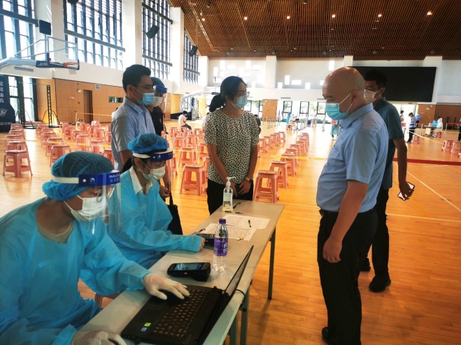 9月23日上午,三级片 党委书记刘建成、院长孙建红、副书记王艳、副院长吴薇薇一行来到天目湖校区,了解返校学生情况并看望即将搬迁的学院学生。学院领导走进学生宿舍,了解学生搬迁准备情况,叮嘱同学们搬迁时要注意安全有序。随后,学院领导前往核酸检测点,参加核酸检测的学院学生。