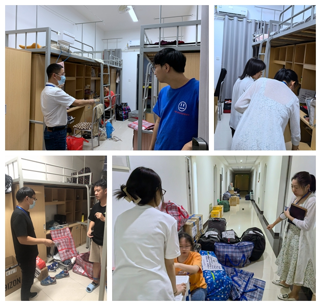 晚上,工作组成员根据工作分工,深入学生宿舍,进一步检查学生行李打包情况,做好搬迁前的最后准备工作。