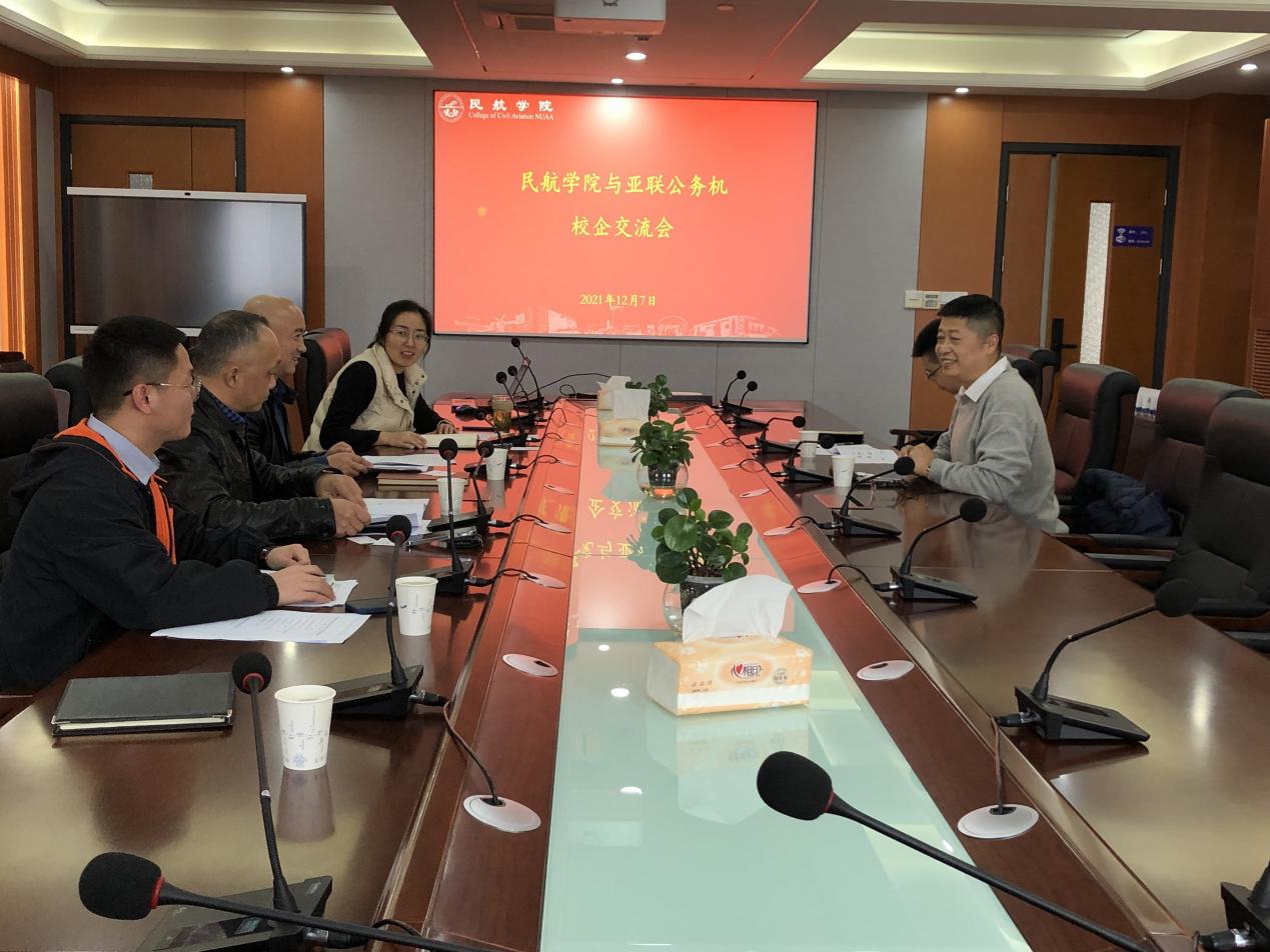 12月7日, 三级片 与亚联公务机有限公司进行校企交流活动。亚联公务机有限公司总工程师于静,亚联公务机有限公司机务工程部总经理陈国栋,三级片 党委书记刘建成、机务工程系李艳军教授、辅导员陈欢、杨九洲参加交流活动。会议由三级片 党委副书记王艳主持。