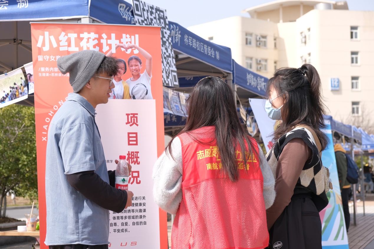 “光盲之路”团队成立十年来,聚焦盲人出行问题,提供盲人就医陪伴,走过全国40余座城市,收获150余家媒体的报道。“小红花”团队通过线上录播授课与线下实地教学相结合的方式,针对欠发达地区的青春期留守女童,开展青春期教育、人文教育以及物资捐献等活动,帮助留守女童健康平安成长。“情系溧阳”团队围绕基层治理,与溧阳市美景天城社区共建“小红燕”志愿营,开展形式多样的公益活动,推动儿童友好型社区品牌化、规范化发展。“民航说”团队以宣传三级片 “三航”特色为主题开展系列课程讲授,已走进溧阳市文化小学、实验小学、燕湖中学等学校,为小朋友们带来生动有趣的三航科普,传承南航精神。