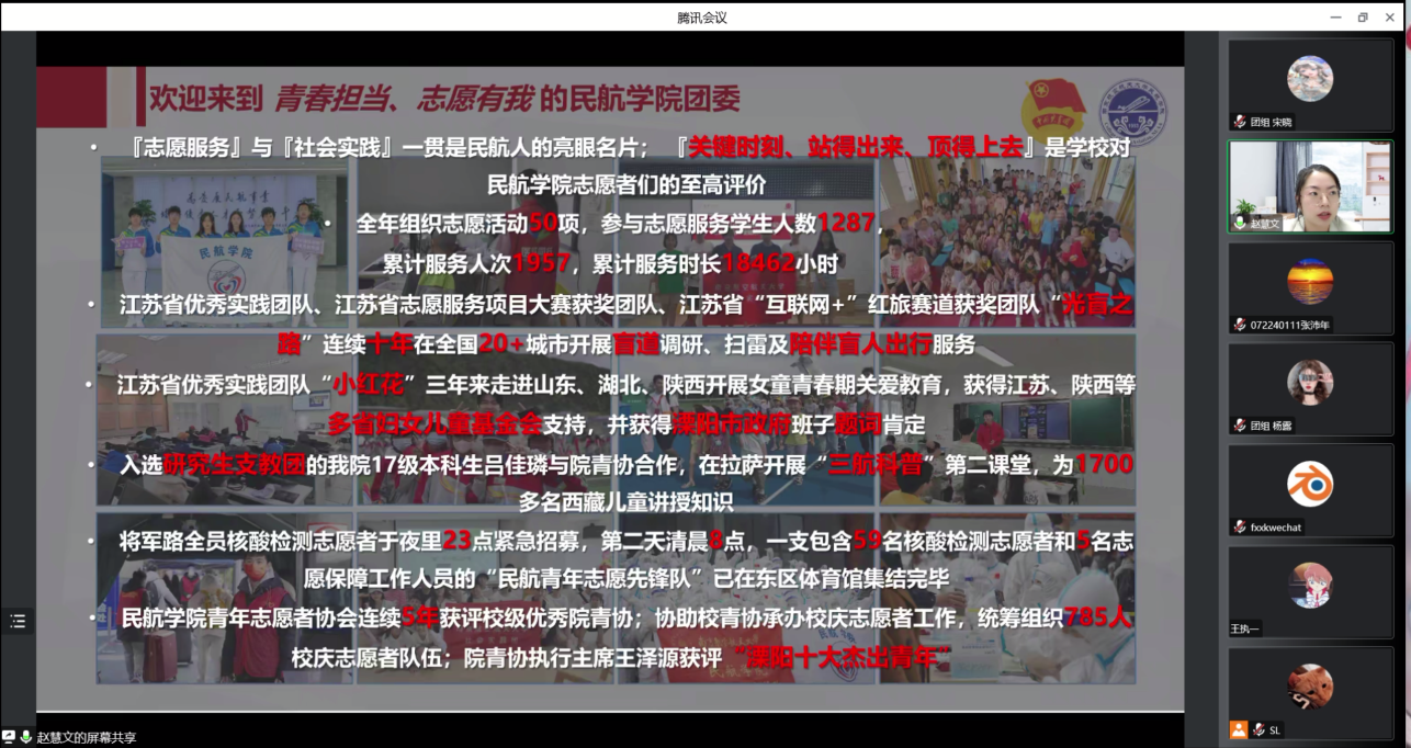 随后,赵慧文特别面向学院天目湖校区新生团干部介绍三级片 团委的工作特色与耀眼成绩。她以“敢想敢为、善作善成、有趣有识”高度概括民航团学工作,并以各项实际工作为例,展现了“薪火相传、荣耀接续”“文体强院、创意无限”“立足行业、民航强国”“青春担当、志愿有我”的团学组织形象,让团干们深入了解并思考学院团委工作。最后,赵慧文勉励广大团干部,要把思想和行动统一到党的二十大精神上来,怀抱梦想又脚踏实地,敢想敢为又善作善成,立志做有理想、敢担当、能吃苦、肯奋斗的新时代好青年。