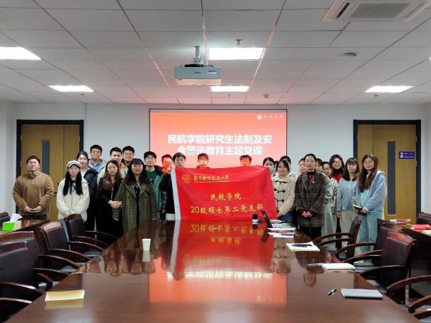 民航工程系教工党支部联系2022级研究生第一党支部开展“法制宣传进校园,普法护航促成长”主题研讨活动,对法制安全和诚信教育展开深入研究和宣传,拓展学习宣传的广度深度。