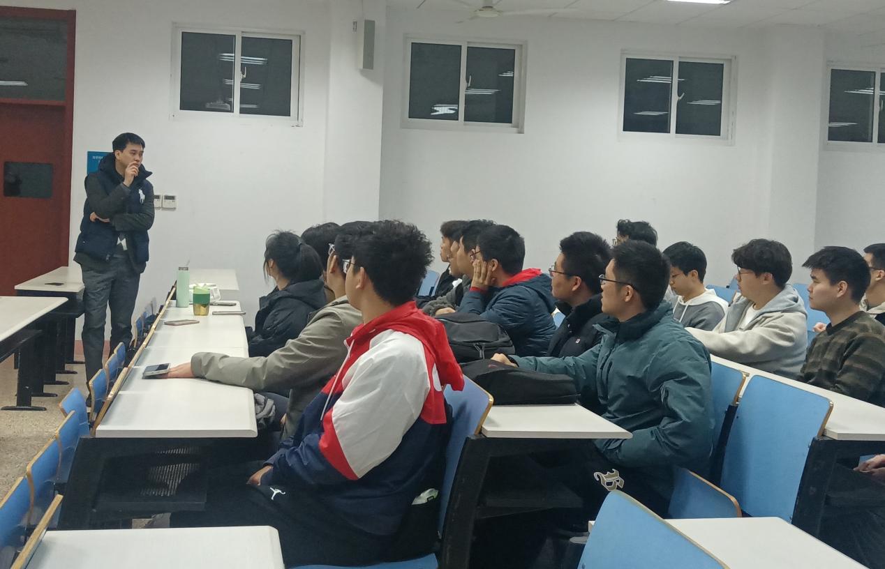 座谈会上,牛天坤结合二十年的从业经验,针对疫情以来空管行业的变化趋势,以幽默诙谐的方式,向学生们介绍了未来可能面临的行业竞争和不同地域的工作境况。向学弟学妹们提出了适应社会大趋势发展的建议,告诫大家一定要努力提升个人能力,掌握扎实的专业知识,才能适应未来行业的变化和发展。同学们都被牛天坤所讲内容深深吸引,并积极向学长提出关心的问题,现场讨论十分热烈。