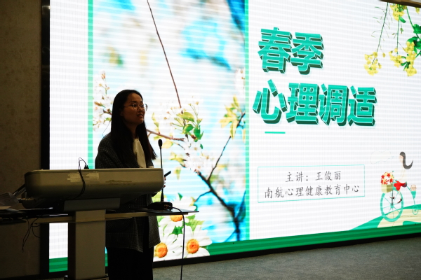 新学期,新起点,为进一步做好春季心理调适,考后疏导解压,培养学生乐观向上的心理品质。3月13日,校心理健康教育中心王俊丽老师为学院天目湖校区本科生讲授“开学第一课”之“春季心理调适”专题讲座。