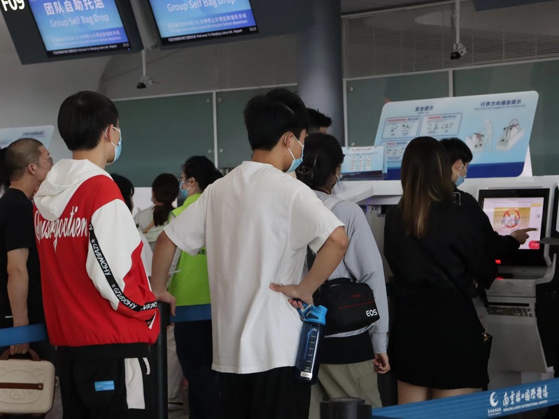 随后,支部成员进入南京禄口国际机场内部,工作人员向大家介绍了地面服务部各个岗位。在经过相关培训以后,支部成员来到自动值机柜台协助一些旅客完成了值机,了解到机场一线工作人员的职责所在。