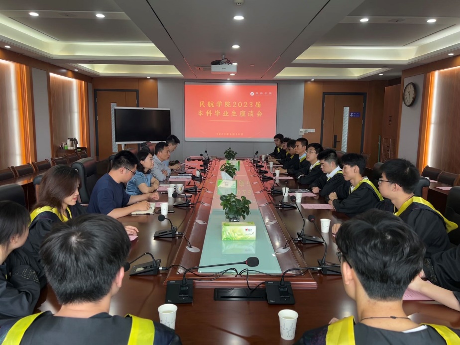 座谈会上,田勇对2023届毕业生基本情况进行介绍,他从 “天目一期”、“心系民航”、“强国有我”三个关键词展开,对学院全体本科毕业生的校园经历、升学就业情况进行概述,同时代表学院对23届毕业生表达祝贺。