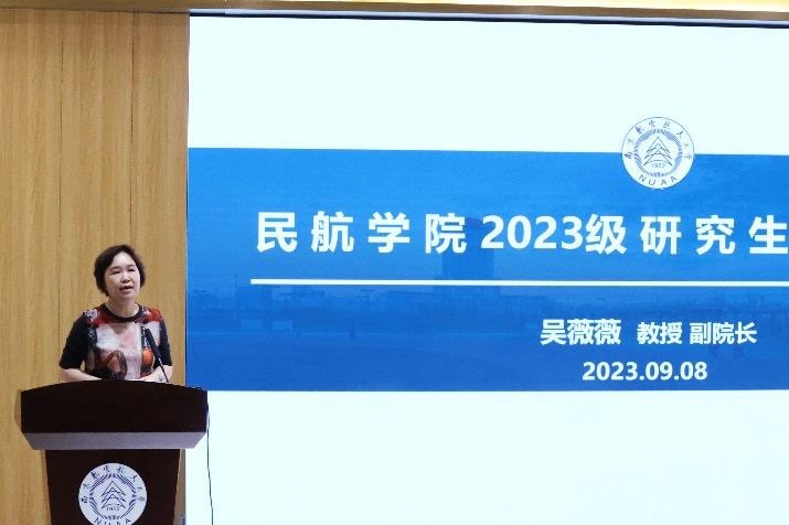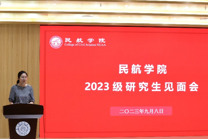 院长孙建红代表学院全体师生对2023级研究生新同学的到来表示热烈欢迎。值此建院三十周年之际,勉励新生“让人生历程和民族复兴进程同频共振,努力成为民航科技的新生力量”,他对新生提出了三点希望,希望研究生坚定思想、认清时代,探索创新、实干笃行,志存高远、胸怀家国,始终做有追求、有本领、有担当的民航人。