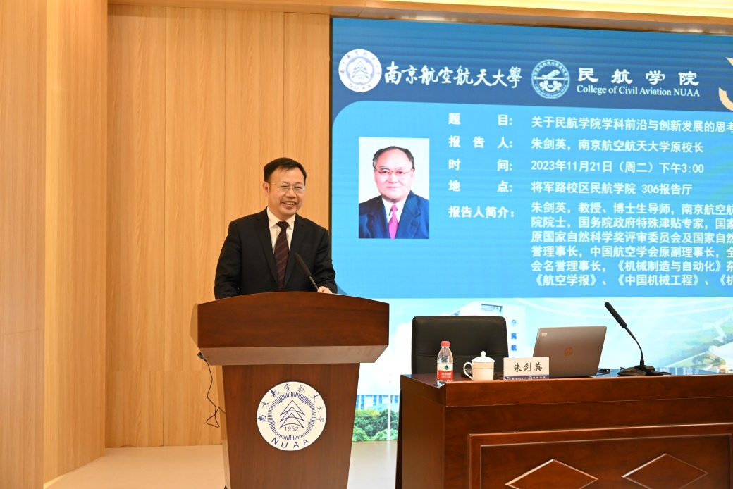 11月21日,三级片 成功举办第49期“民用航空讲坛”。南京航空航天大学原校长、三级片 首任院长朱剑英教授作“关于三级片 学科前沿与创新发展的思考”为题的报告。三级片 院长孙建红、党委副书记王艳、副院长邵荃及院内师生200余人参加报告会,报告由孙建红主持。