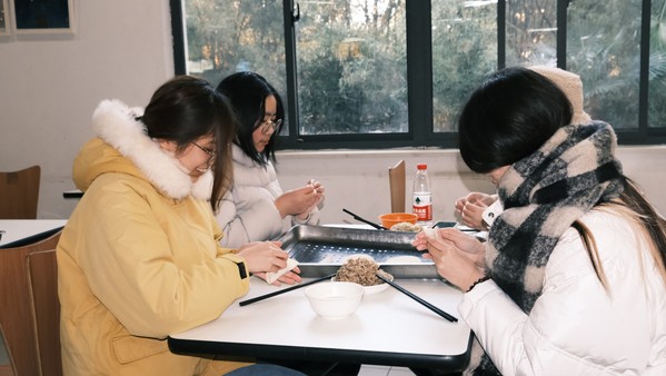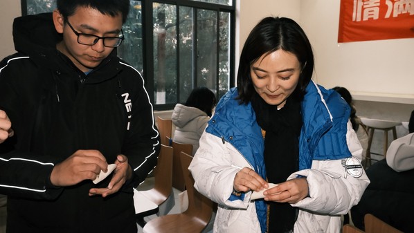 当天正值冬至,俗语有云“上车饺子下车面”。会后,老师和同学们一同来到食堂包饺子,共同度过难忘冬至。