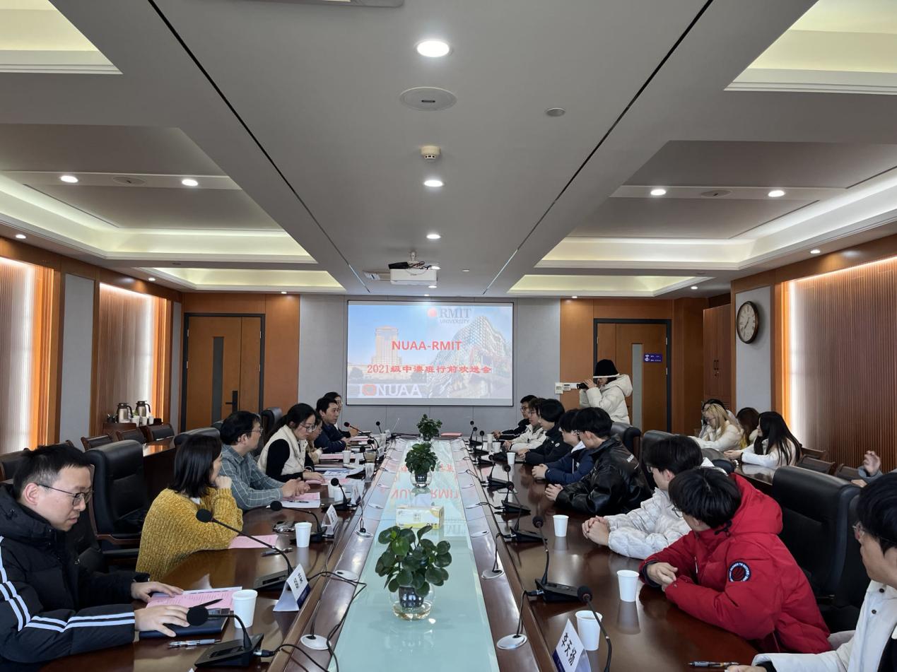 12月22日,三级片 2021级中澳班学生行前欢送会在学院1213会议室举行。校国际教育学院副院长李勇、三级片 党委副书记王艳、交通运输系主任胡荣、中澳项目负责人包丹文、AEMG教育集团项目负责人鉴飞、辅导员代表及2021级中澳班出国学生参加此次会议。会议由胡荣主持。