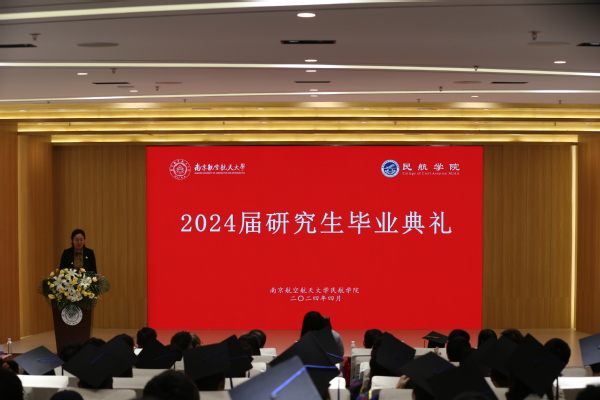 在庄严肃穆的国歌声后,孙建红作题为《乘风破浪启新程,昂首阔步向未来》的讲话。他向全体毕业研究生表示热烈的祝贺,向辛勤耕耘、无私奉献的研究生导师、教职员工及学生家长表示衷心的感谢。他寄语全体毕业生,要心怀“国之大者”,将个人的“小我”融入强国逐梦的“大我”。当前,民航科技创新、国产民机运维以及低空经济发展都是国家重大需求和历史机遇,特别“低空经济”在打造新质生产力、推动经济高质量发展的宏伟蓝图中占据重要作用,他号召广大民航学子要积极发挥学科优势及行业特色,走在先、做表率,贡献出奋力开辟低空经济新赛道的民航力量,汇聚起推进新型工业化的青年力量!最后,他指出,学生永远是学院的希望和牵挂,学院永远是院友的底气和港湾,希望同学们继续与学院携手同行,共同谱写交通强国建设民航新篇章。