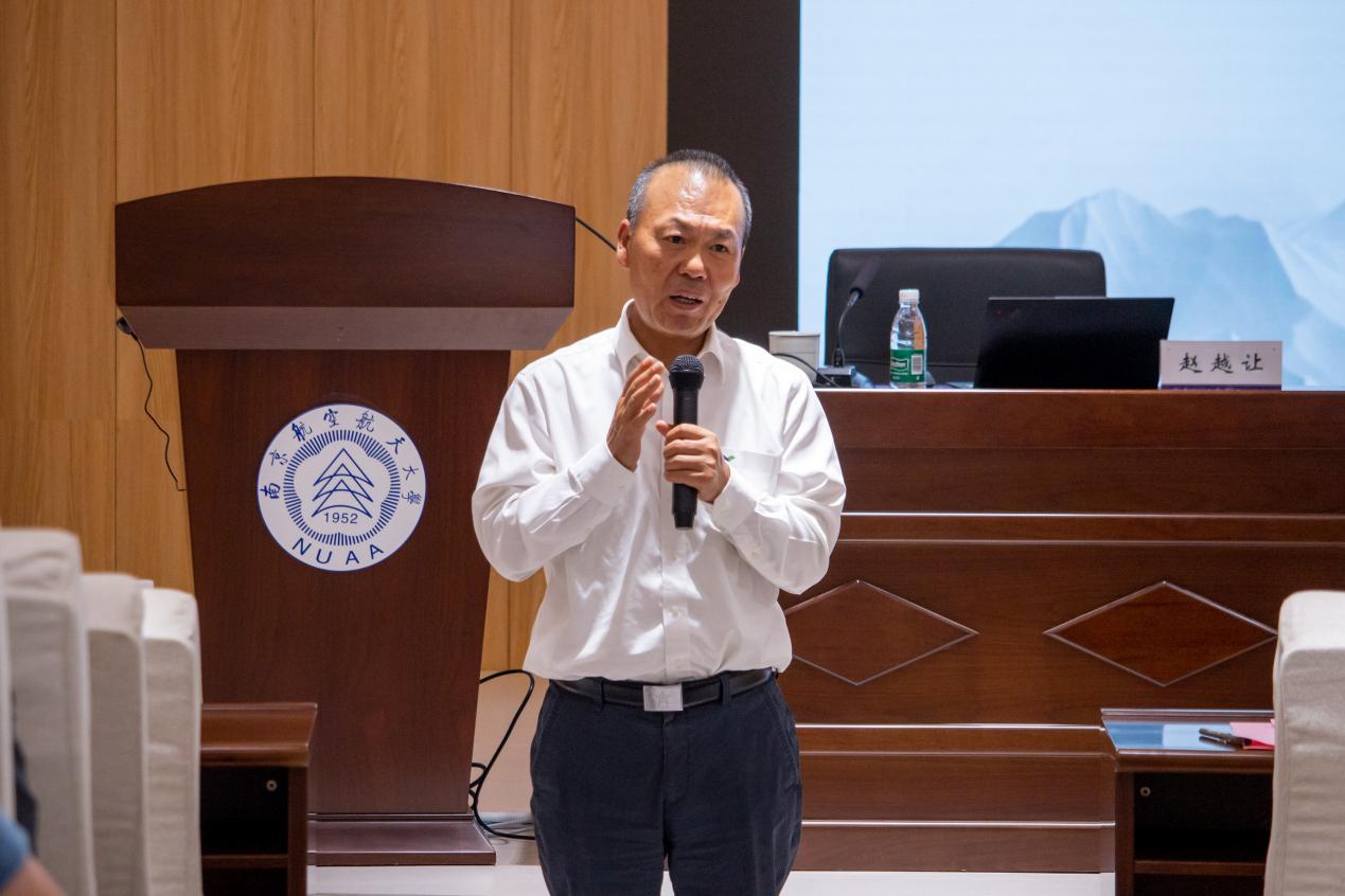 赵越让是我国民机适航领域的领军人物,为ARJ21飞机和C919飞机的适航取证做出了杰出贡献。他结合自己投身民机行业30余年的工作经历,带领同学们系统回顾C919大型客机的研制和适航取证历程,以声像资料、案例讲述等形式生动呈现高强度辐射场试验、失速试飞、极限气象条件下的验证等多种重要试验试飞场景。一个个惊心动魄的场景、一个个负重奋进的故事、一个个勇毅前行的榜样,无不令在场的青年学子为之动容。