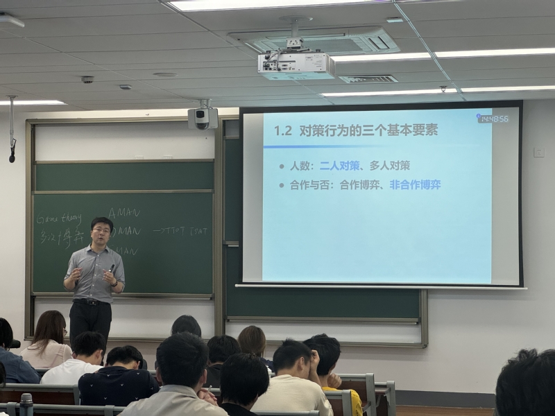 包杰从对策论的发展历程入手,介绍了对策行为的三个基本要素,通过囚徒困境的经典博弈论案例引申到当代社会的内卷困境,引导学生用博弈的思维辨知世界。在此基础上,运用问答、分享等形式,和学生进行互动,引出矩阵对策的数学模型及其纯策略下的平衡局势定义。整个课堂以课程问题为载体,以学生为中心,有机融入思政元素,培养学生思辨能力的同时,点亮学生学习内动力。