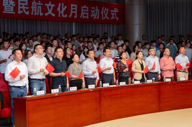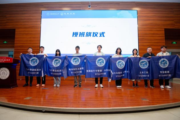 院领导及教师代表共同启动民航文化月系列活动并为本科生班级授旗。