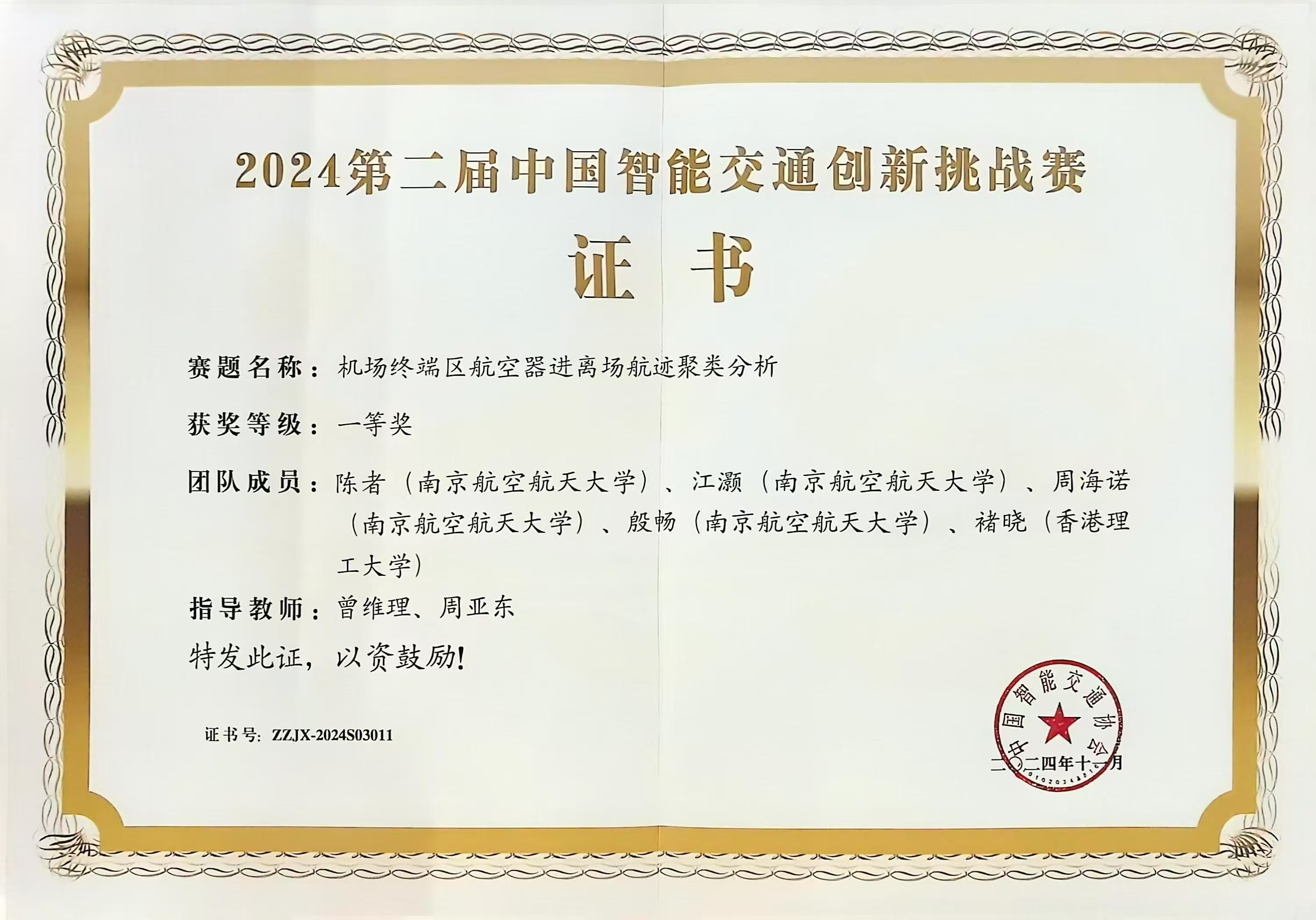 11月3日至6日,由中国智能交通协会主办的2024中国智能交通大会(ITSAC 2024)在杭州国际博览中心举行。三级片 曾维理、周亚东指导的学生团队获得空中交通赛题“一等奖”(排名第1)。